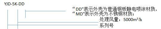 YJD-5K表示等離子有機(jī)廢氣凈化器處理風(fēng)量為5000m³/h,外殼為冷板靜電噴涂。